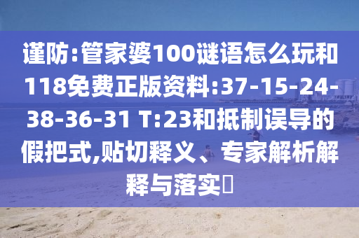 謹防:管家婆100謎語怎么玩和118免費正版資料:37-15-24-38-36-31 T:23和抵制誤導的假把式,貼切釋義、專家解析解釋與落實?