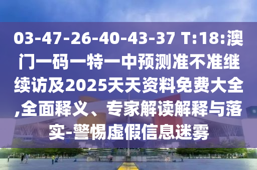 03-47-26-40-43-37 T:18:澳門一碼一特一中預測準不準繼續訪及2025天天資料免費大全,全面釋義、專家解讀解釋與落實-警惕虛假信息迷霧