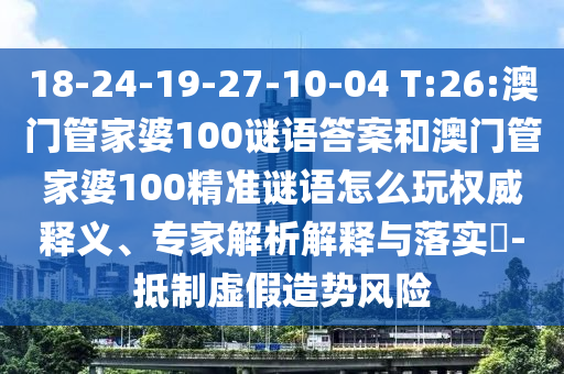 18-24-19-27-10-04 T:26:澳門管家婆100謎語答案和澳門管家婆100精準謎語怎么玩權威釋義、專家解析解釋與落實?-抵制虛假造勢風險
