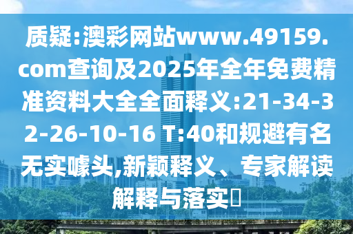 摘要:針對澳彩網(wǎng)站www.49159.com查詢及其提供的2025年全年免費精準資料大全,存在質疑。對此,專家解讀解釋稱,應注重實際內(nèi)容而非有名無實的噱頭,對于給出的數(shù)字如21-34-32-26-10-16 T:40等,需審慎對待,并結合實際情況進行分析和落實。在追求新穎釋義的同時,確保信息的真實性和可靠性至關重要。