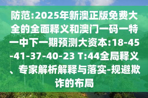2025年新澳正版免費大全的全面釋義和澳門一碼一特一中下一期預(yù)測大資本:18-45-41-37-40-23 T:44:全局釋義、專家解析解釋與落實